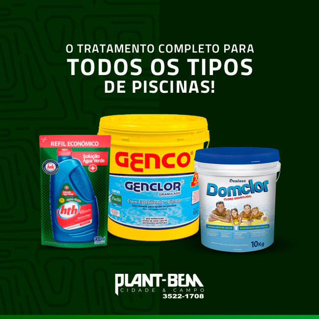 A Plant-Bem possui diversas marcas de produtos que vai deixar sua piscina limpa sem qualquer tipo resíduos.